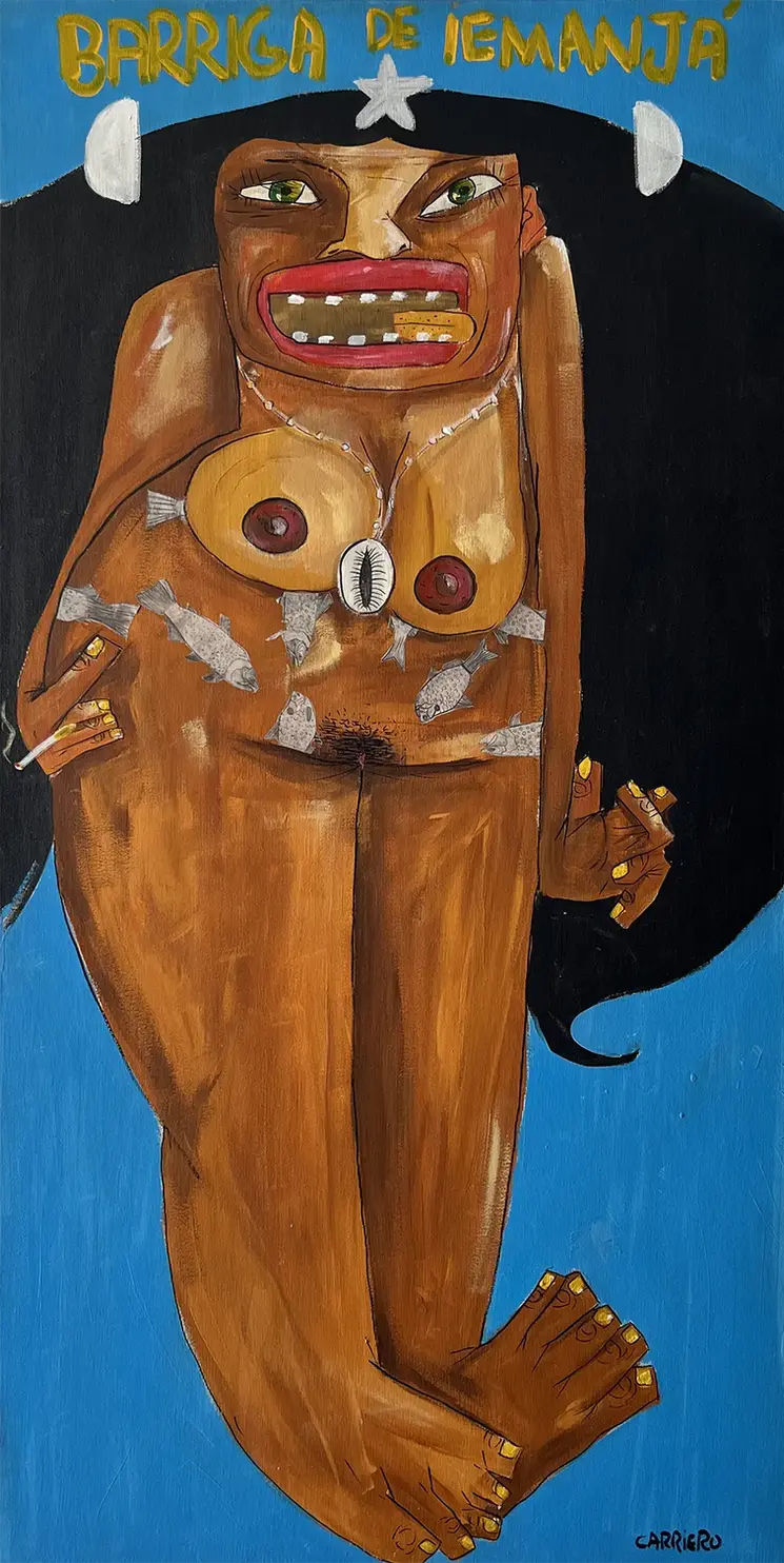 A pintura é entendida como uma técnica que coloca texturas e tons em uma determinada superfície através do uso de pigmentos. Carriero costuma usar, na maioria da produção, tinta acrílica, podendo ser ela aplicada em tela, ou em papel. Sua pintura é dinâmica, sem muito detalhe, apenas para insinuar ou representar uma ideia do que ele deseja passar. No seu processo criativo busca explorar as questões corriqueiras, principalmente o que não é visto por muitos, ressignificando e problematizando, com o objetivo de gerar reflexão. Suas referências são o próprio espaço in loco, além de músicas populares, livros e a cultura de massa.